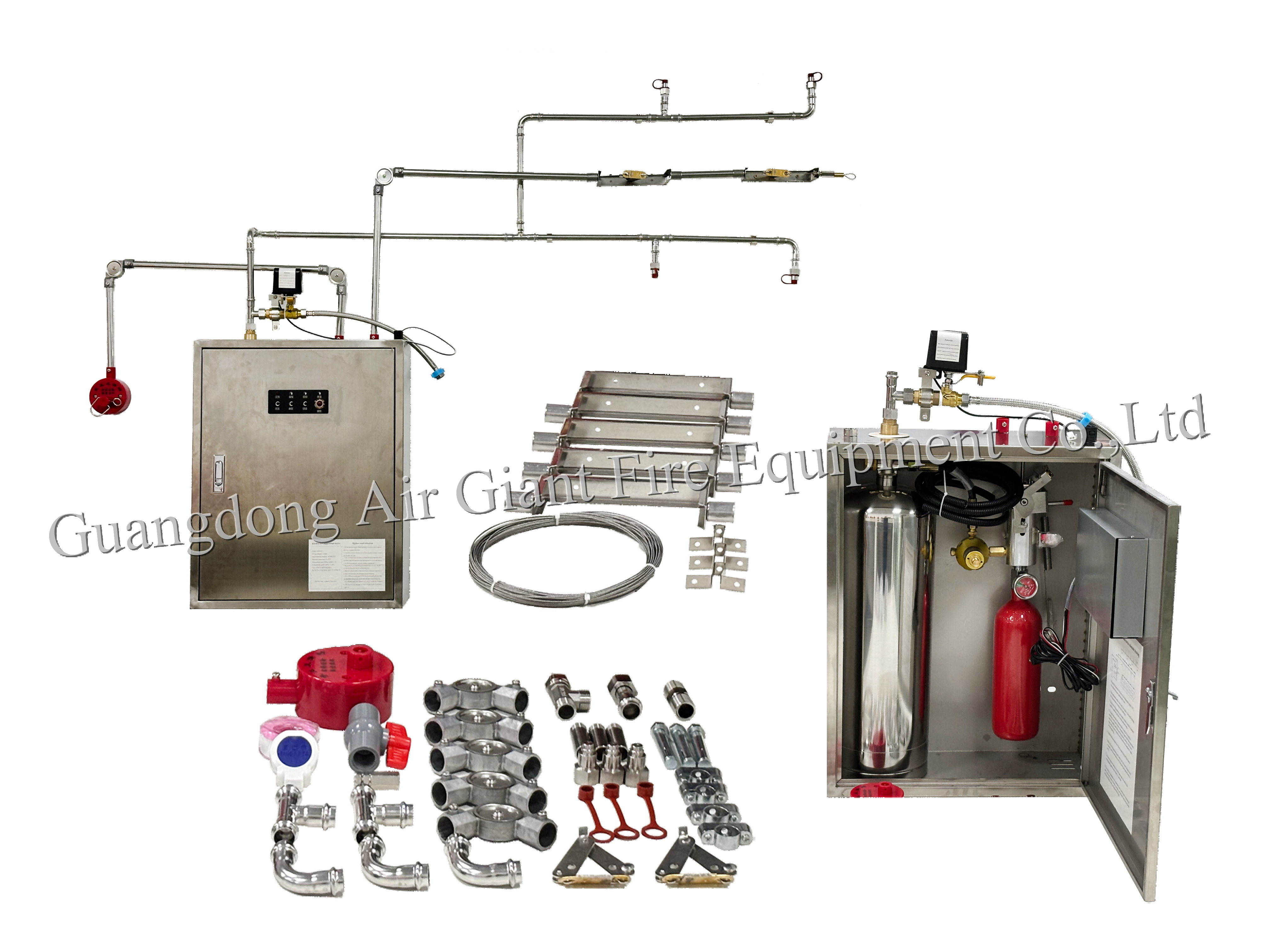 রান্নাঘরে সাধারণ রান্নার তেলের আগুন ভালোভাবে মোকাবেলা করার জন্য, অগ্নি নির্বাপণ ব্যবস্থা রান্নার তেলের জন্য বিশেষভাবে ডিজাইন করা একটি অগ্নি নির্বাপক দ্রব্য দিয়ে সজ্জিত। এই দ্রব্যটি বিষাক্ত নয়, গন্ধহীন, দূষণমুক্ত এবং পরিষ্কার করা সহজ, যা ব্যবহারের পরে পরিষ্কার-পরিচ্ছন্নতার কথা বিবেচনা করে নিরাপত্তা নিশ্চিত করে। এটি গ্রীসের মতো সহজে জ্বলনযোগ্য পদার্থের কারণে সৃষ্ট আগুন দ্রুত নির্বাপণ করতে পারে এবং আগুন পুনরায় জ্বলে ওঠা থেকে কার্যকরভাবে প্রতিরোধ করতে পারে।